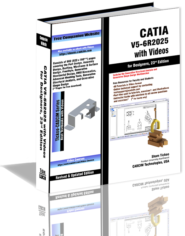 CATIA V5-6R2025 with Videos for Designers textbook introduces readers to CATIA V5-6R2025, one of the world’s leading parametric solid modeling software packages. It consists of 16 chapters that cover the major workbenches of CATIA V5-6R2025, including Sketcher, Part Design, Assembly Design, Drafting, Wireframe and Surface Design, Generative Shape Design, Sheet Metal Design, and DMU Kinematics. It explains the concepts of sketch creation, applying constraints, feature-based solid modeling, assembly modeling, and 2D drafting in a clear and systematic manner. The textbook also introduces advanced modeling techniques using surface design and sheet metal tools to help users create complex engineering models efficiently. The author emphasizes on solid modeling and editing techniques that improve user productivity and design efficiency.