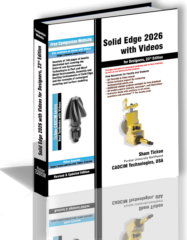 Solid Edge 2026 with Videos for Designers textbook introduces the readers to Solid Edge 2026, one of the world's leading parametric solid modeling packages. Consisting of 15 chapters, the book covers the Part, Assembly, Drafting, and Sheet Metal environments of Solid Edge 2026. Both synchronous and ordered environments are discussed throughout this book. Also, 3D sketching is discussed in both synchronous and ordered environments. 3D sketching combines the speed and flexibility of modeling with precise control on dimension driven designs, thereby providing tremendous productivity gains over traditional methods.