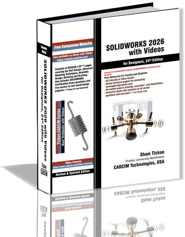 SOLIDWORKS 2026 with Videos for Designers textbook introduces readers to SOLIDWORKS Design 2026, a powerful, industry-leading 3D CAD solution renowned for its intuitive interface and robust parametric, feature-based modeling capabilities. Structured to provide a comprehensive understanding of the software, the book covers the core design environments including Part Modeling, Assembly Design, and Drawing Creation, guiding users through the complete product development workflow.